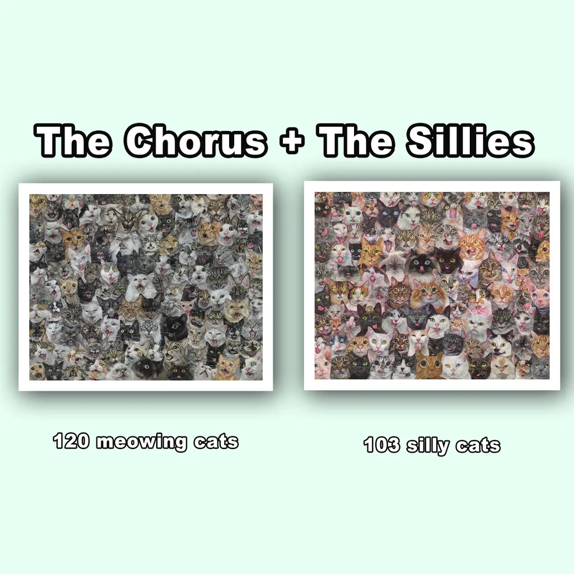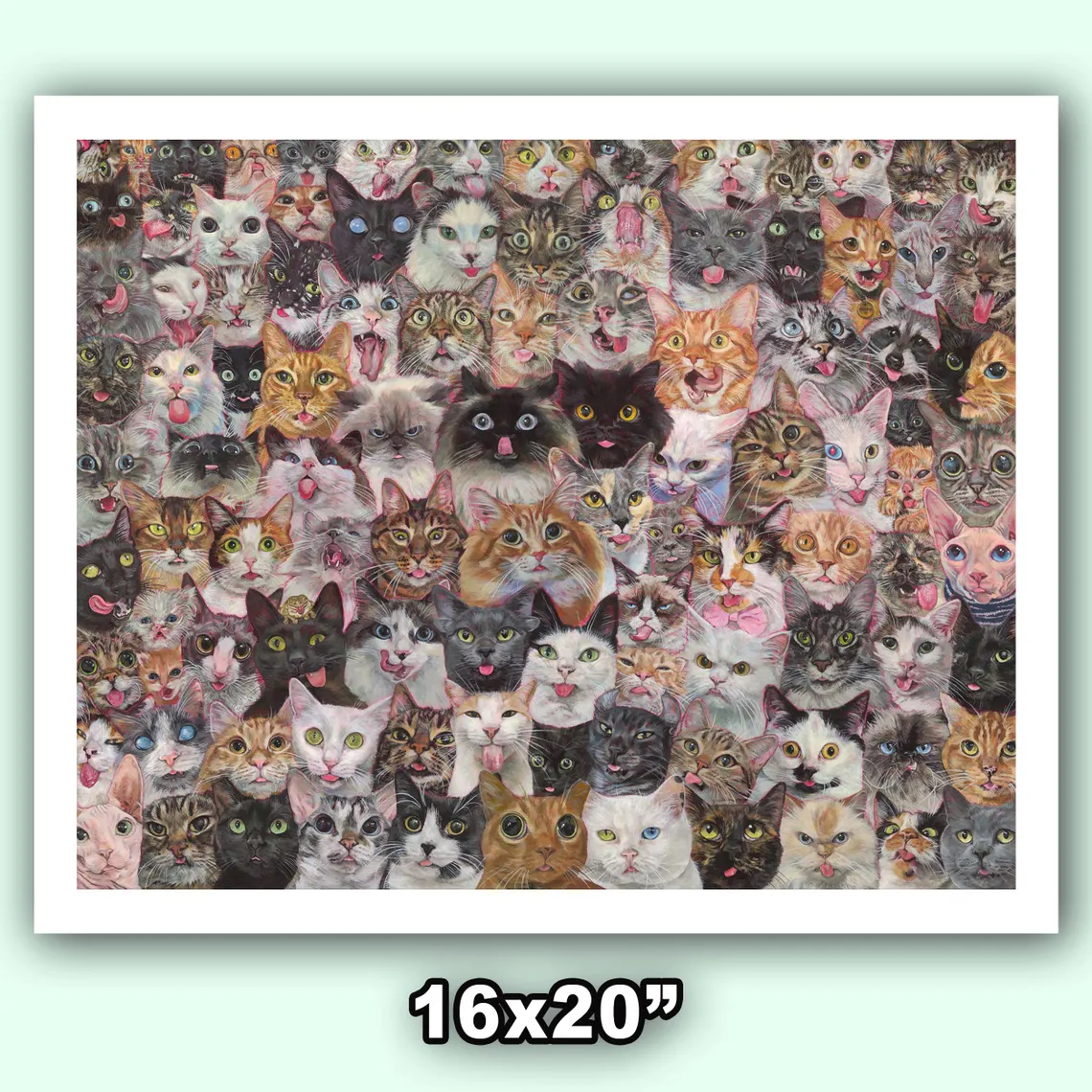 Highlights Made by rebeccasalinasart Materials: Acrylic, archival paper, paper Width: 51 centimeters Height: 41 centimeters 16×20″ print [image size 14.4×18″] printed on archival matte photo paper. Comes with a key sheet listing the cats names and where to find them in the print, as well as individual cat info and a mini game printed on copy…